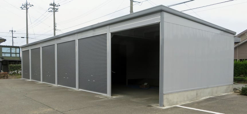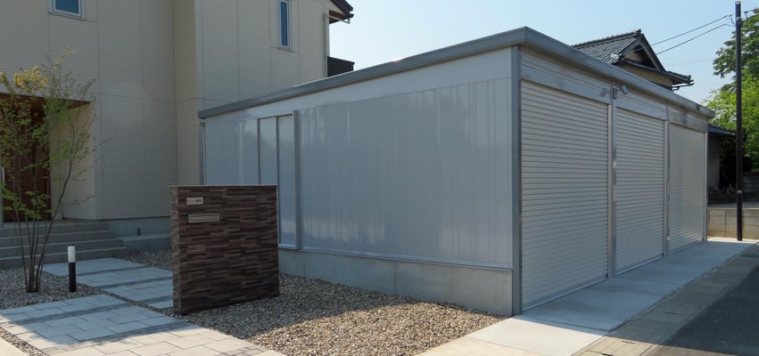 既存のガレージが古くなったので撤去して新たに6連棟で作って頂きました