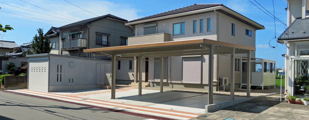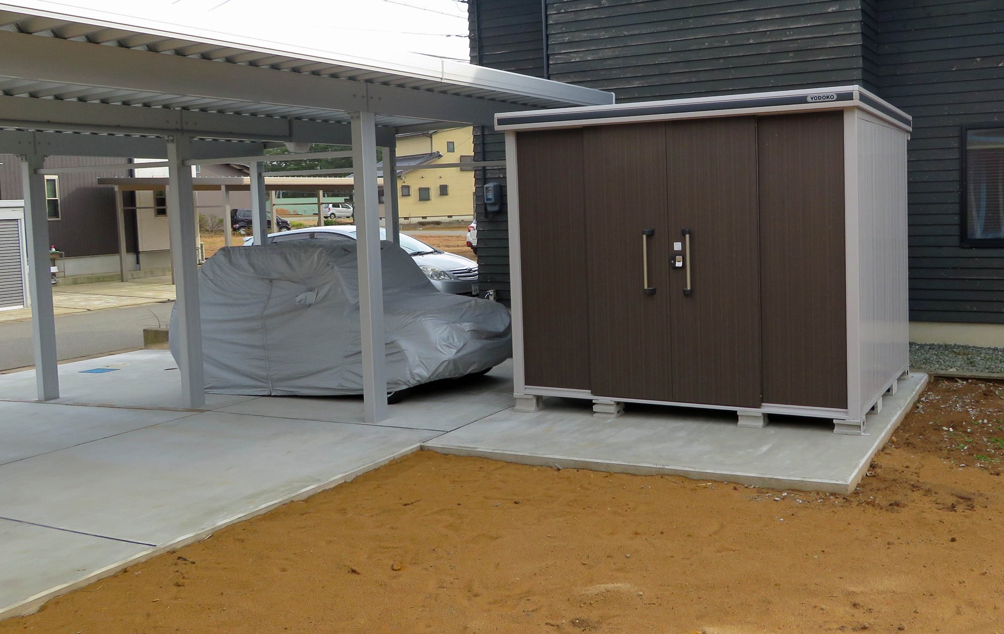 新築してから少し落ち着いてからイナバガレージを工事して頂きました 趣味の車が有るので3台用にしました