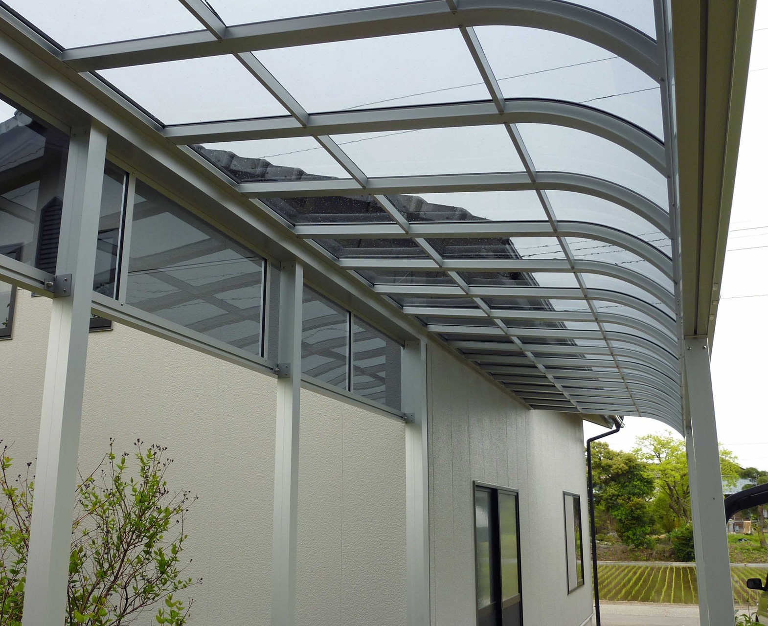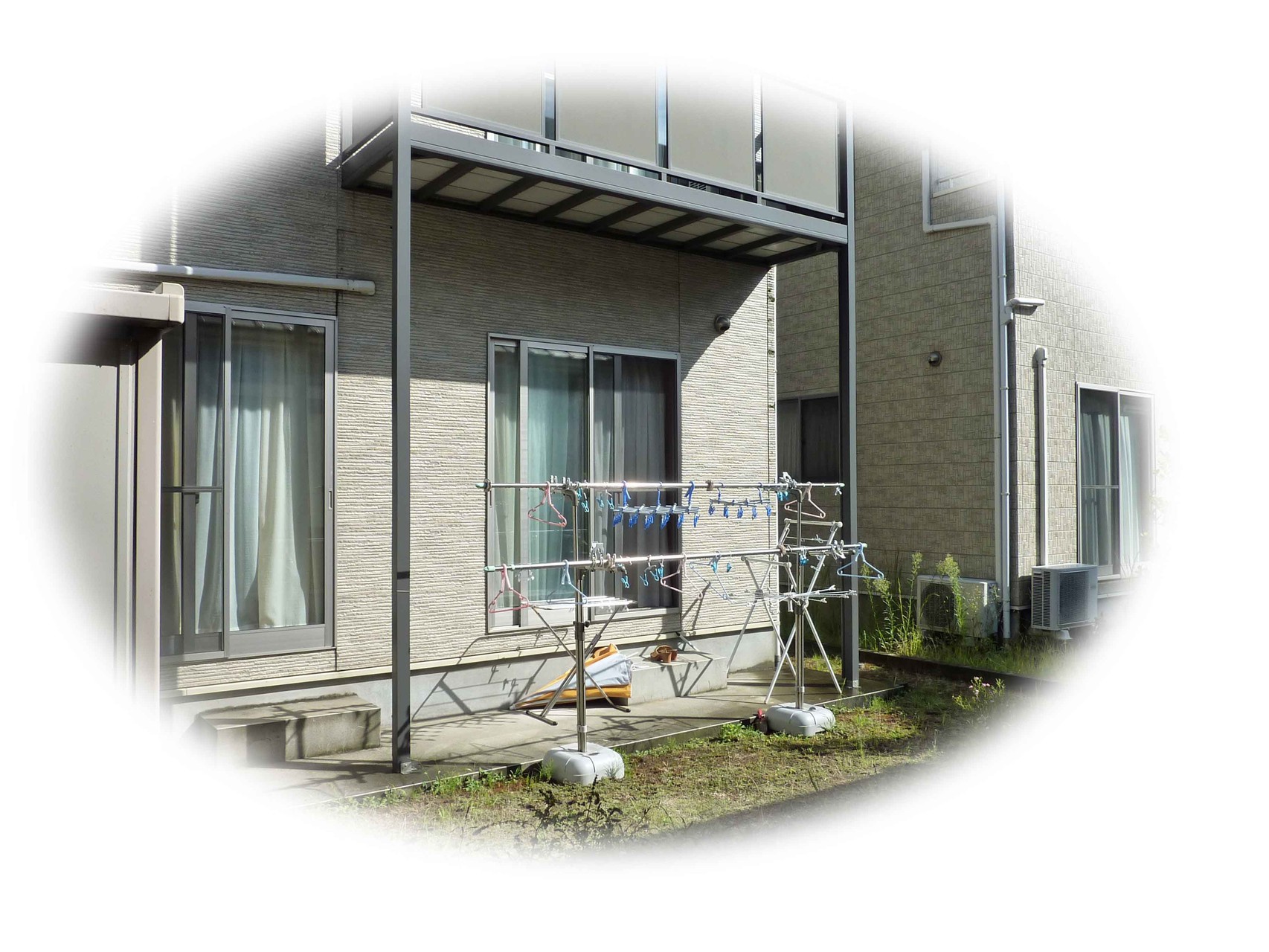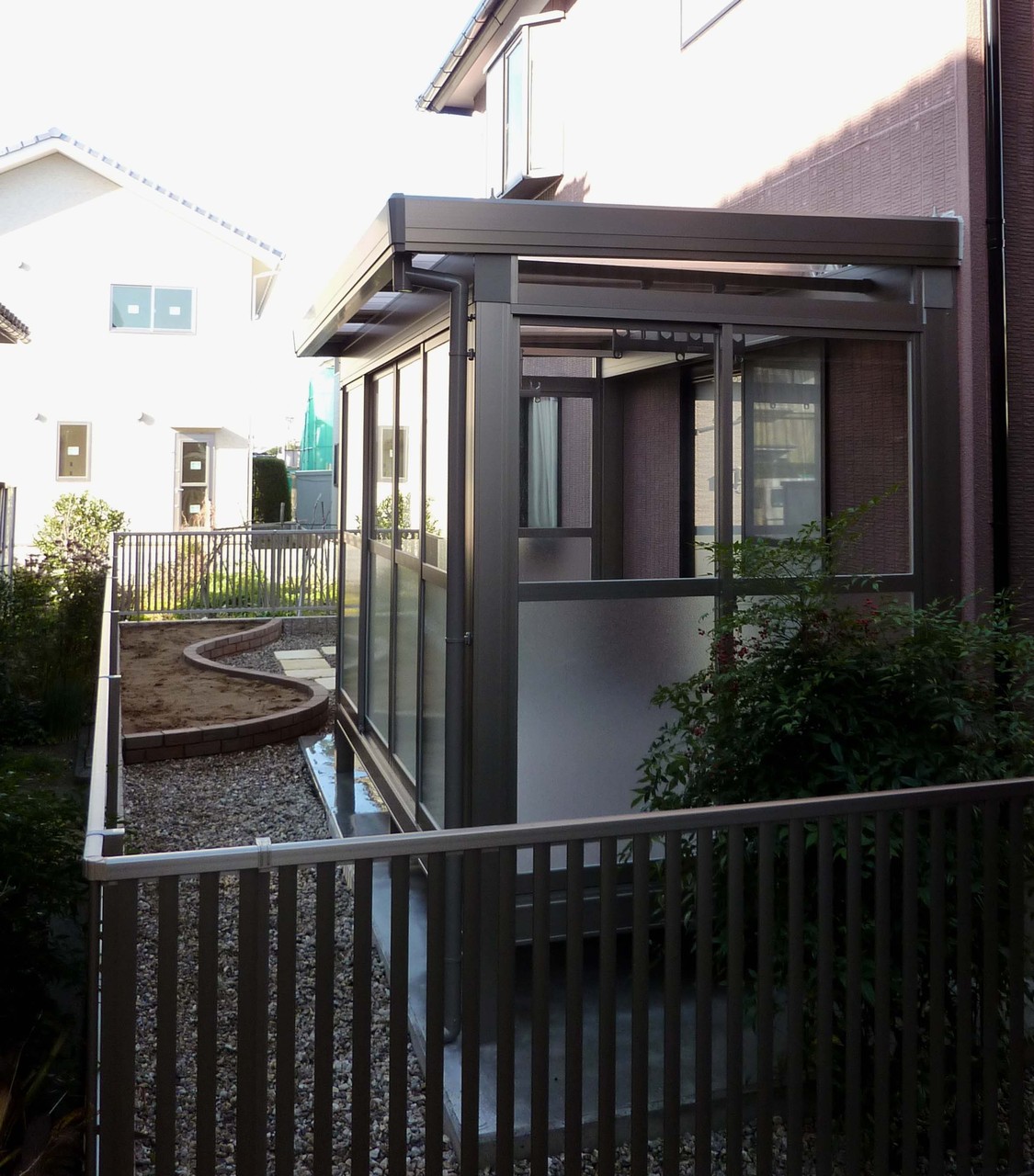 強風が吹く所なので 風に強いテラスVSという商品を付けてもらいました。横にもサイドパネルを付け風対策はばっちりです。